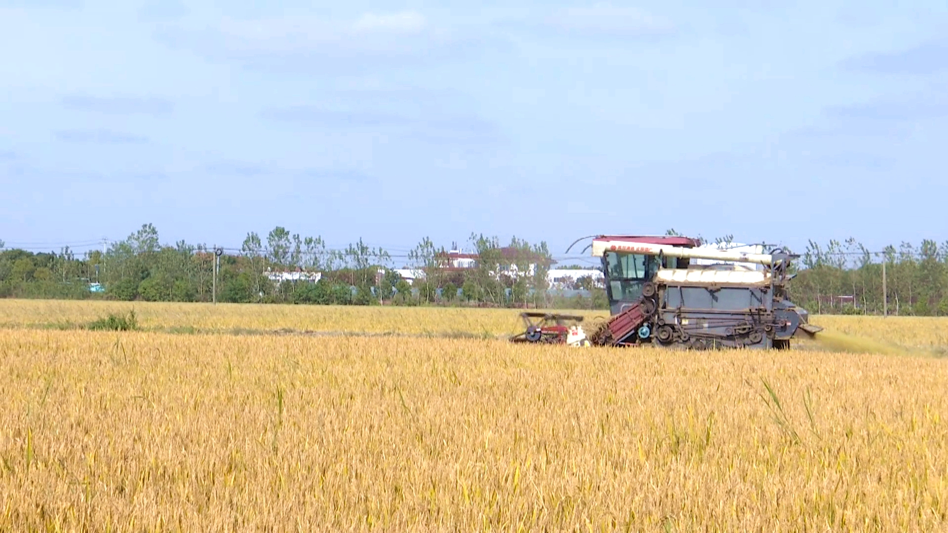 在黄桥镇果园村福先家庭农场,两台收割机开足马力在田间往复穿梭,收割、脱粒、碎秆还田等工序一气呵成,现场一派繁忙的丰收景象。“我们正抢抓农时,计划两天内完成水稻收割,收割后立即进行土地深翻,再用3到5天时间完成秋播,为明年夏熟丰收打好基础。”农场负责人朱福先介绍。