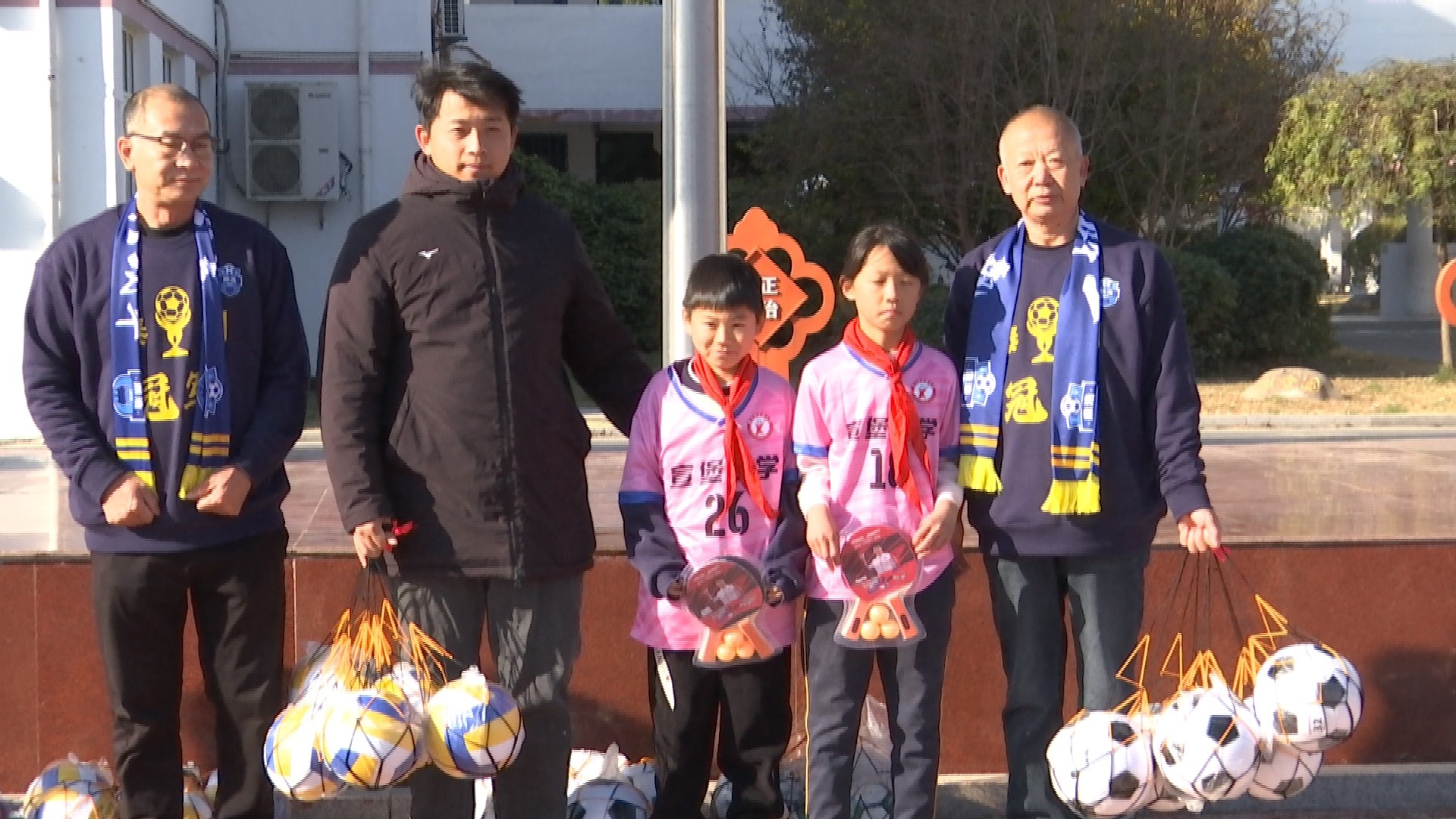 今年8月苏超赛事期间,球迷刘书敏许下“甜蜜约定”,将部分生姜丝销售收入用于为乡村小学添置足球等体育器材。捐赠仪式上,足球、篮球、排球、乒乓球拍等器材整齐陈列,其中10颗带有苏超球员王阳亲笔签名的足球格外引人注目,刘书敏鼓励同学们勇敢追逐“足球梦”。