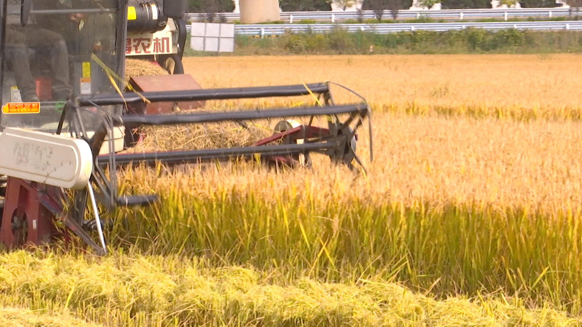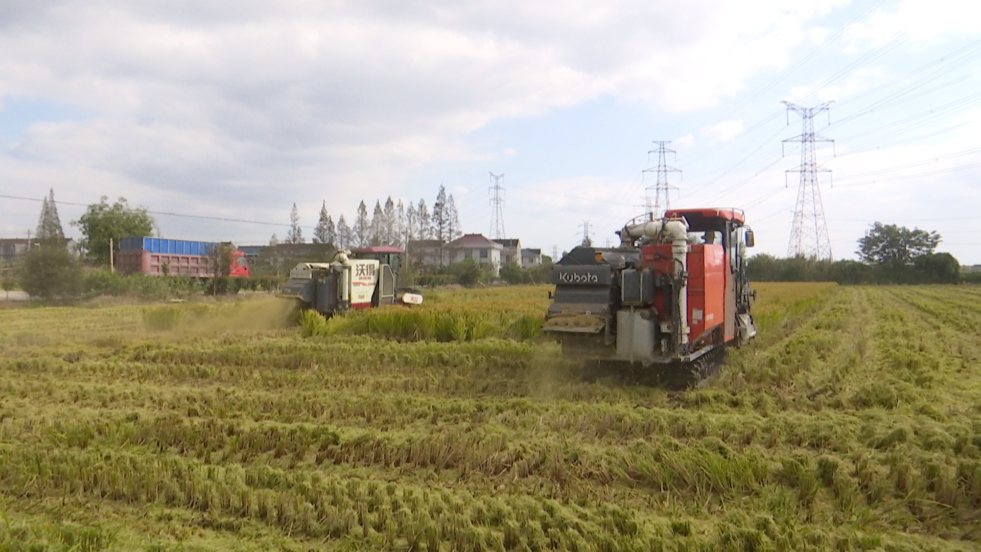 在河失镇印庄村,连片稻田翻涌金色波浪,数台收割机在田间来回穿梭。轰鸣声中,一排排水稻被迅速收割、脱粒,现场一派繁忙丰收景象。“今年产量总体不错,比去年每亩高200斤没问题。目前已割了两天,收了约200亩,用了两台机子,明天再加6台,争取两天内完成收割。”河失镇兄弟谷物种植场业主张小二说。