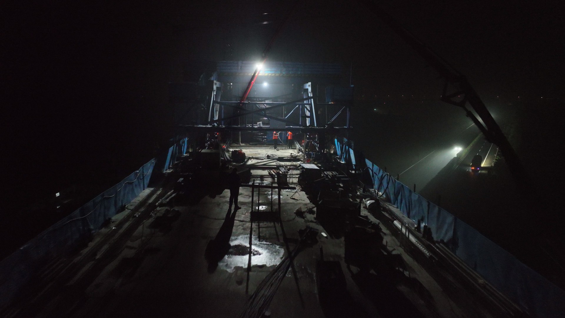 “跨盐靖高速连续梁的施工,我们在不影响交通、不封闭高速的情况下,于今天凌晨顺利完成合龙,这为下一步无砟轨道施工奠定了坚实的基础。”跨盐靖高速连续梁施工负责人史仁贵介绍道。