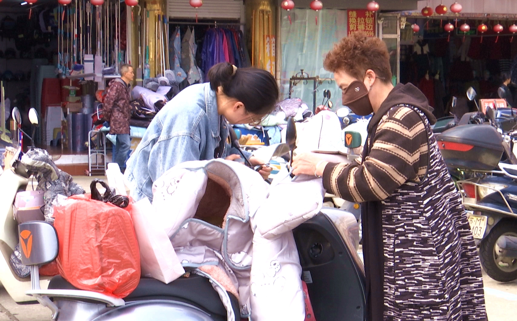 在金马小商品市场,多家商铺已将挡风被、保暖手套等御寒产品摆上显眼位置。商贩徐月芳介绍,此前降温期间,挡风被销量明显增长,“降温那几天,一天能卖出几十件,现在气温相对稳定,销量就恢复到一般水平了。”记者走访发现,街头巷尾行驶的电动自行车中,超半数安装了挡风被,部分挡风被还延伸至车把两侧,包裹住骑行者的手部和腿部。