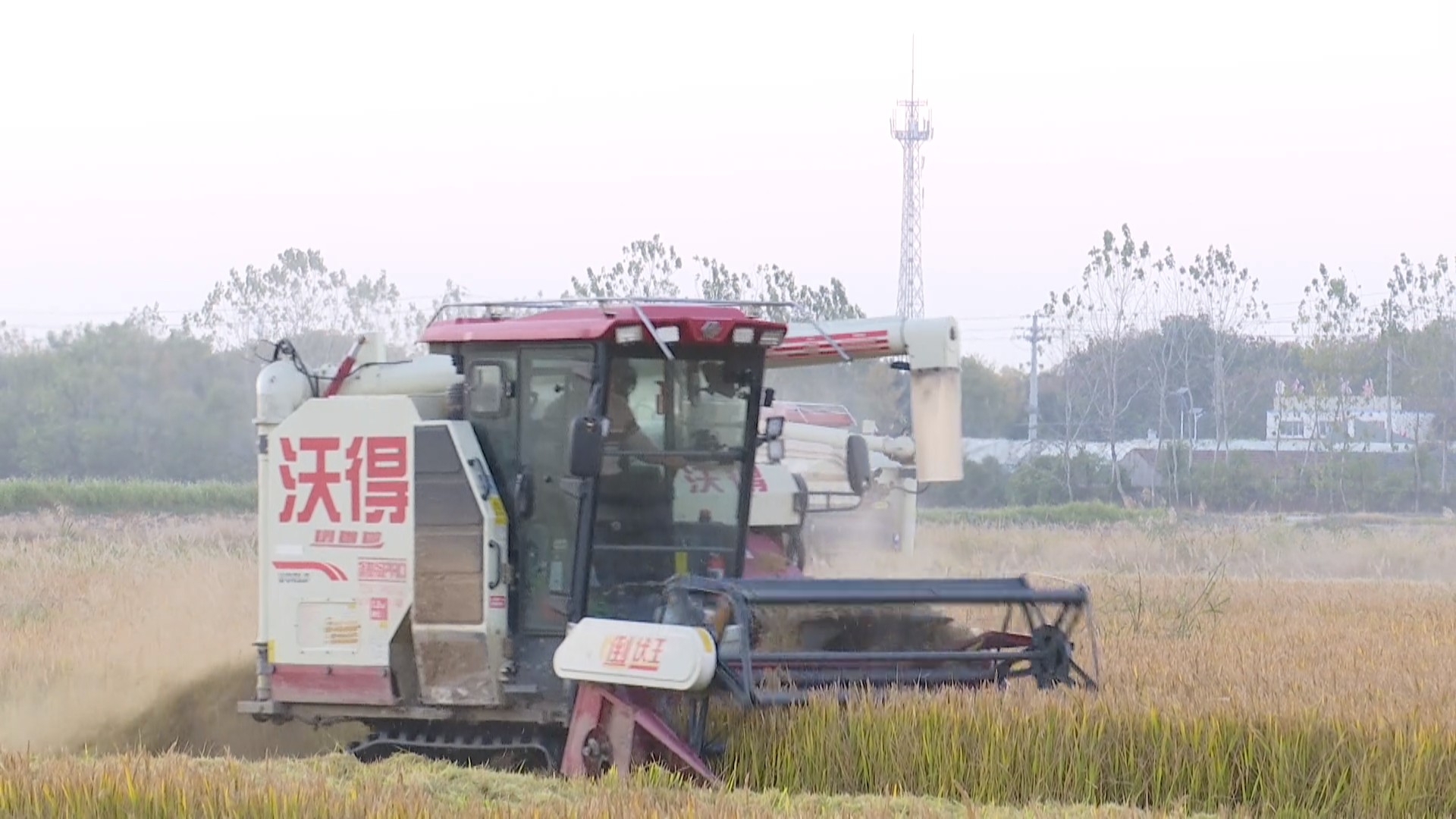 在黄桥镇果园村立冬家庭农场的田间,3台收割机开足马力穿梭于稻田,切割、脱粒、秸秆粉碎等工序一气呵成,农机轰鸣间,成熟的水稻快速完成收割。为抢抓农时,农场科学调配农机与人力,实行“人歇机不歇”的连续作业模式,大幅提升收割效率。“我们从昨天开始抢收水稻,400多亩稻田预计今晚8点前全部收完。明天就转入耕整地环节,争取5天内完成小麦播种,确保不耽误下一茬作物生长。”黄桥镇果园村立冬家庭农场负责人陈立冬介绍道。