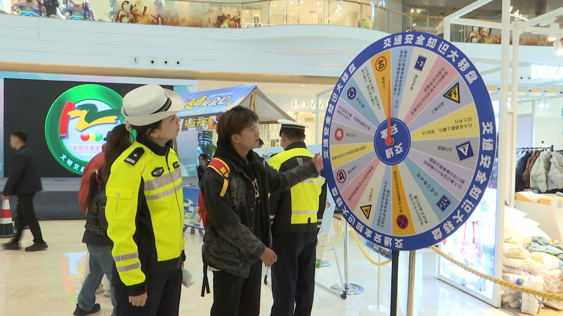 12月2日是第十四个“全国交通安全日”。为弘扬法治精神、倡导文明出行,12月1日晚上,市公安局民警走进吾悦广场,开展以“文明交通礼行天下”为主题的公益宣传活动,将交通安全知识送到群众身边,深受市民欢迎。