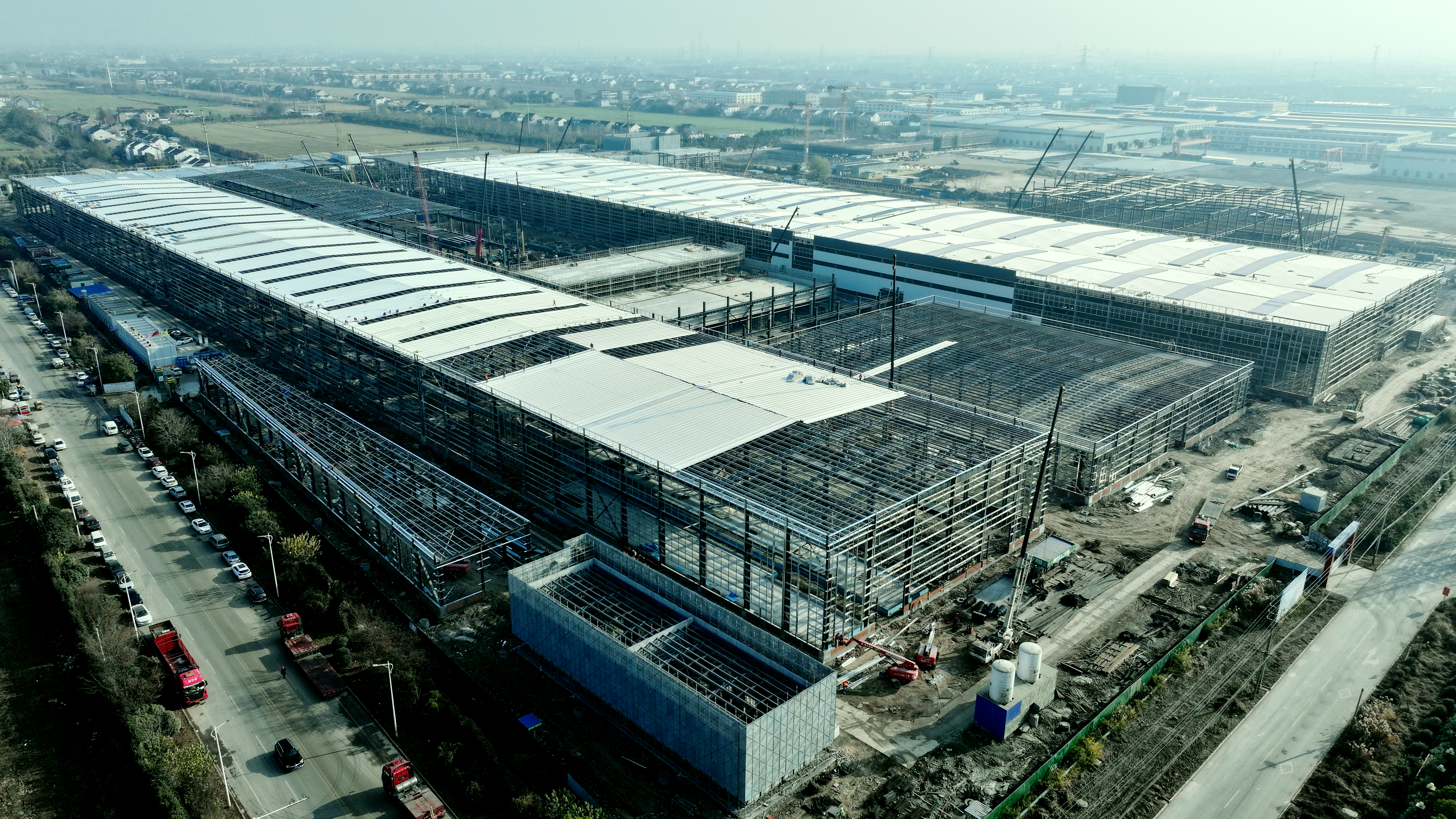 走进新华昌集装箱项目施工现场,大型钢结构厂房巍然矗立,主体结构已基本完成。车间内,施工人员分成多个班组同步开展设备基础浇筑,一派热火朝天的建设景象。