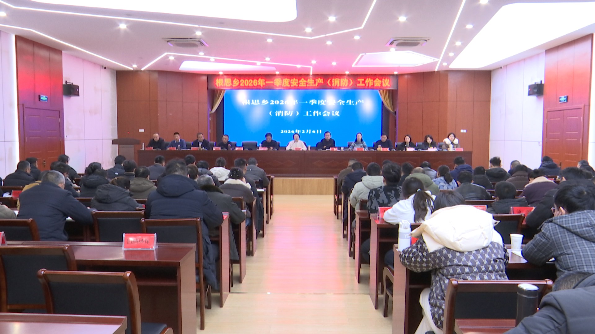 2月6日下午,根思乡召开一季度安全生产会议,要求强化落实相关工作指引和任务清单,抓实风险辨识与闭环管控,开展隐患排查、“六化”建设等专项行动,同时压实三方责任,强化联合监管、人员培训和危险作业管控,筑牢安全防线。与会人员观看了安全生产警示纪实片。