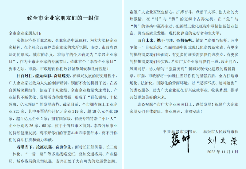 以城市名义致敬!“泰兴企业家日”正式启动