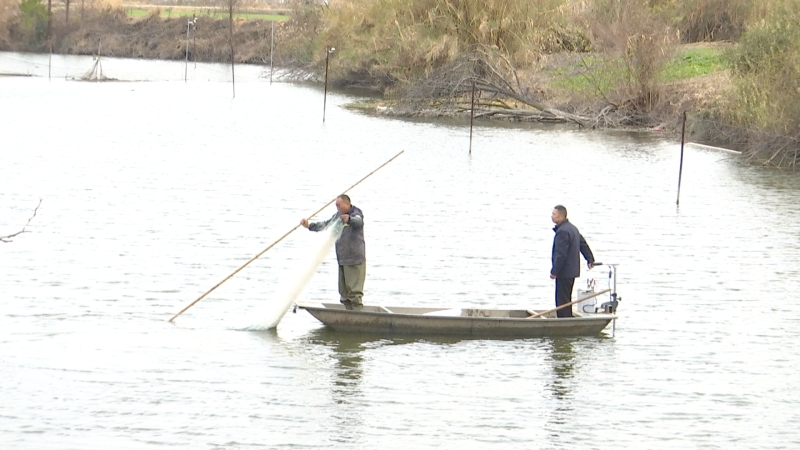 12月22日,珊瑚镇左庄村生态渔业养殖示范基地内一派丰收景象,养殖户黄富平正忙着捕捞鲜鱼。“今年年初在基地投放了草鱼、鲢鱼等鱼苗,承包的中沟水质一直保持得很好,平时做好垃圾清理保洁工作,一年卖鱼能有2到3万元收入。”黄富平一边分拣鲜鱼,一边向记者分享增收喜悦。