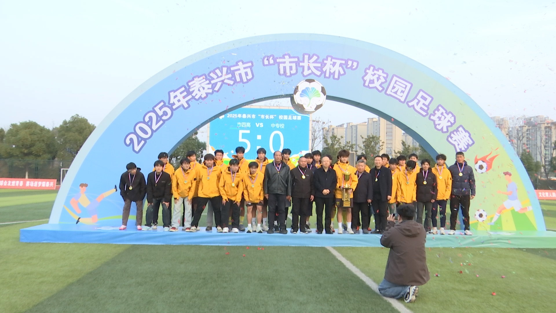 12月29日下午,2025年泰兴市“市长杯”校园足球赛(高中组)决赛在泰兴中学体育场鸣哨开赛。泰兴四高与泰兴中等专业学校强强对决,为全场观众奉献了一场高水平的体育盛宴。副市长惠星全程观战,并为冠军队员颁奖。