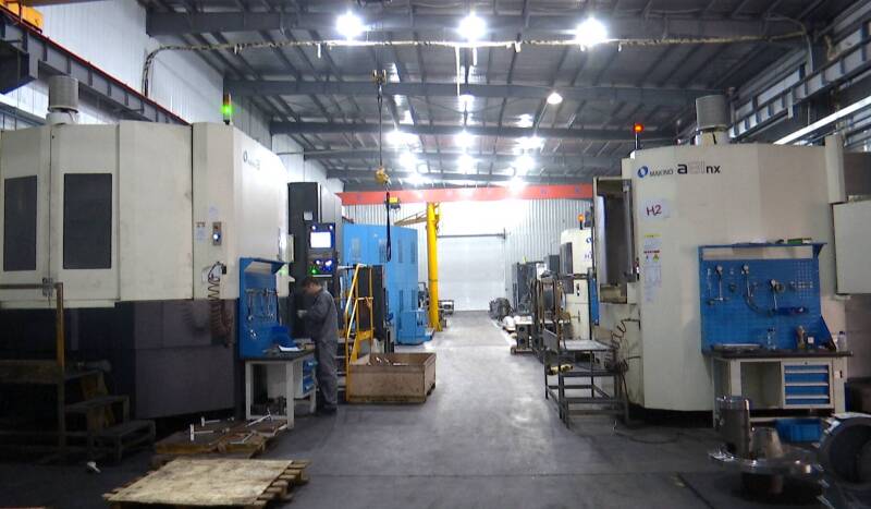 在江苏合球机械科技有限公司生产车间,工人正操作新购置的卧式四轴加工中心忙碌作业。该设备可完成硬金属零件铣削、镗孔等复合工序,是企业今年追加400-500万元投入实施的精加工技改项目核心装备。