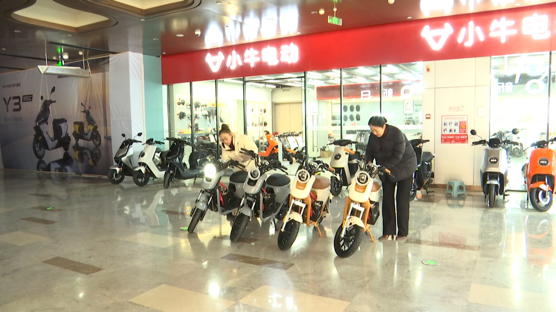 目前展厅内新国标电动自行车存量较少,仍以电轻摩、电摩为主。多位销售人员透露,该类车型近期在其他城市销量平平,“价格偏高、速度偏慢、无法载人”的特点,让不少刚需用户望而却步。