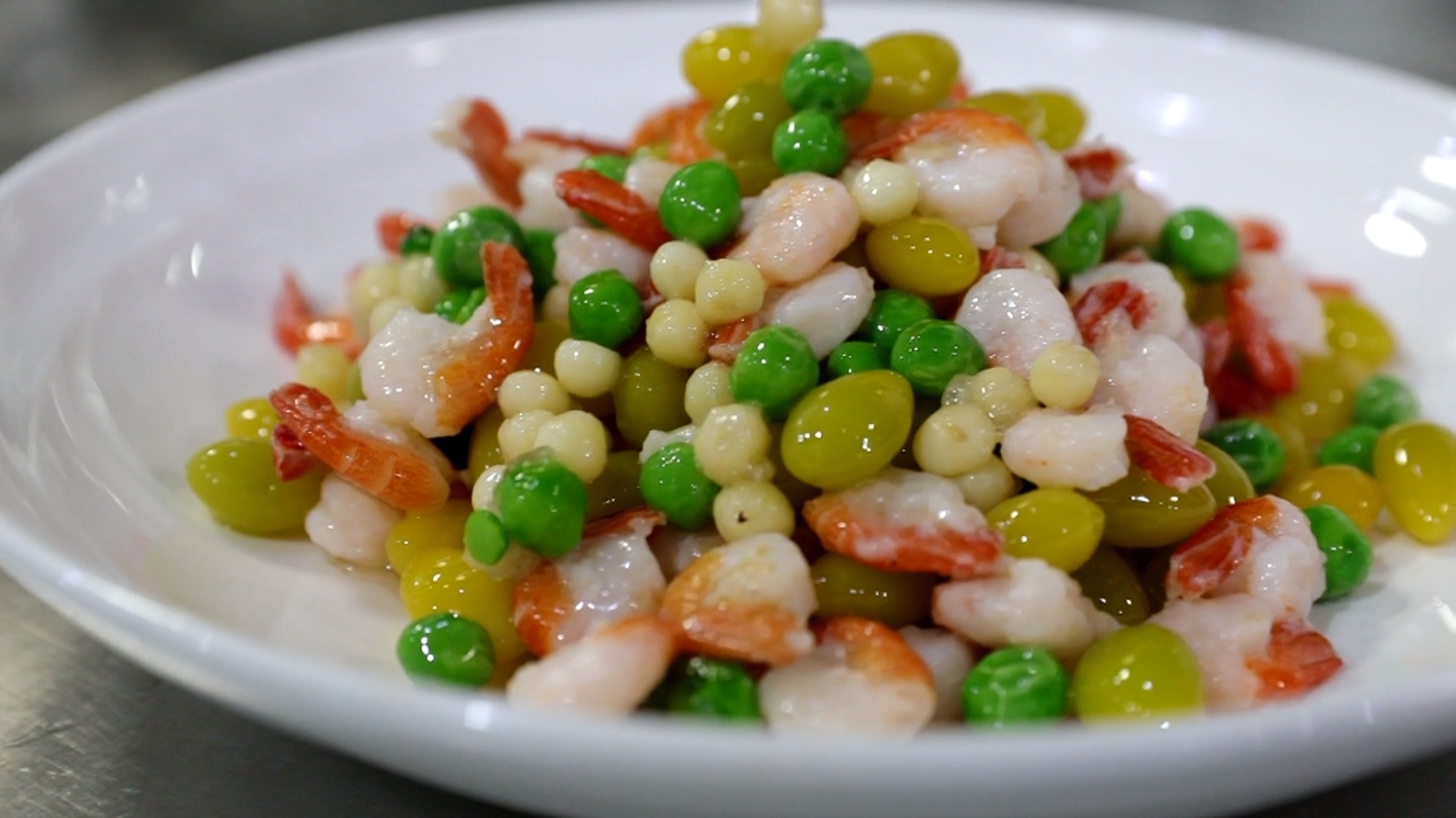 上午的鑫泰餐饮部后厨热气蒸腾,吴斌正为赛事紧张备战。他身着厨服,刀工利落,青壳河虾瞬间被处理成“凤尾”造型;一旁,“大佛指”银杏在90℃热水中焯煮3秒后迅速冰镇锁色,颗颗碧绿如玉。经大火爆炒,虾肉弹脆鲜嫩,银杏清糯回甘,一盘“银杏凤尾虾”香气四溢,尽显泰兴特色食材的独特风味。“能代表家乡出征,我心情十分激动。”吴斌表示,将把泰兴传统美食与本土特色食材相结合,运用中西融合的烹饪手法,展现泰兴美食的创新魅力。
