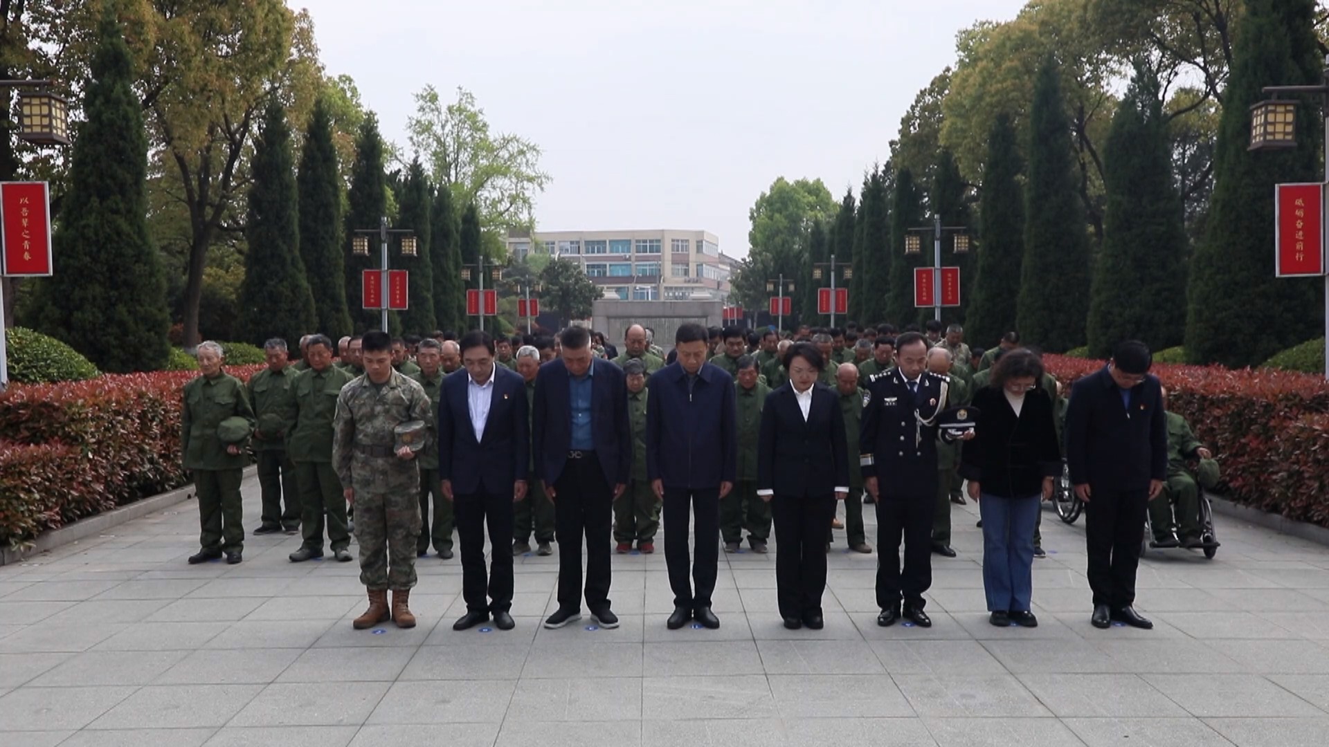下午3点,祭扫仪式正式开始。全场肃立,《义勇军进行曲》响彻陵园,全体人员向烈士默哀,深切缅怀志愿军英烈的不朽功勋。随后,全场齐声重温“三个不相信”铮铮誓言。