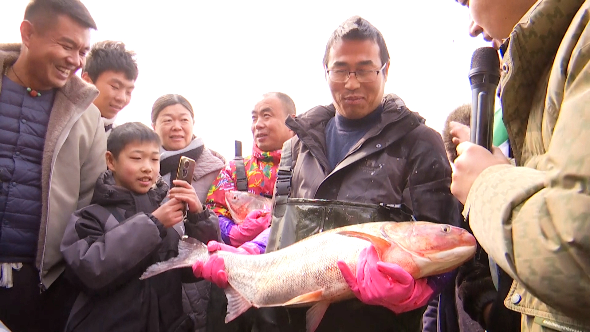 扬州游客赵伟收获满满:“这条鱼实际重量是6.7公斤,我当时报给主持人的是13.5斤,感觉自己的第六感非常准。希望2026年我和家人能顺风顺水、年年有余。”
