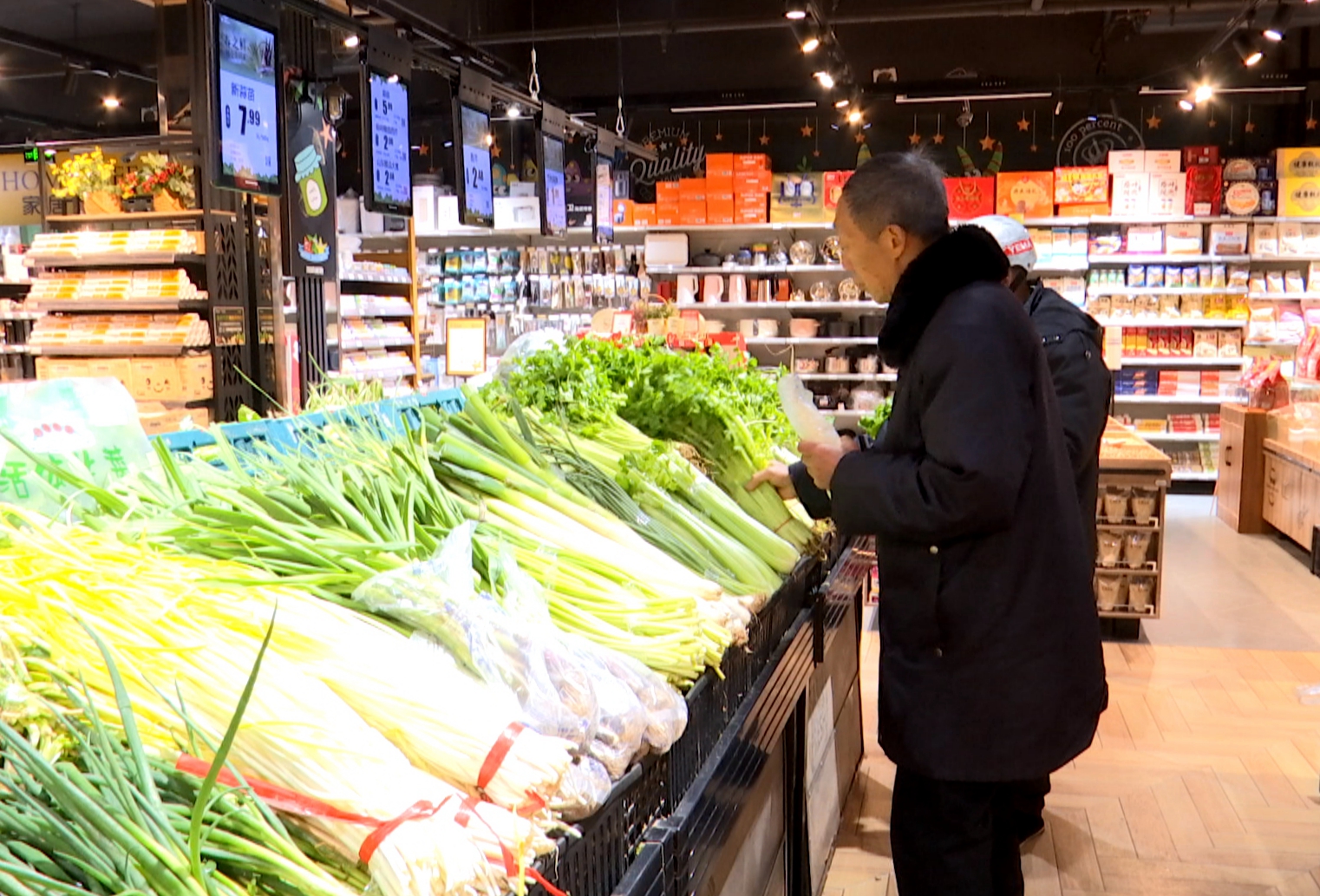 在海纳星地超市蔬菜区,绿意盎然、鲜香扑鼻,紫红油亮的香椿、鲜嫩翠绿的荠菜、裹着春泥的春笋等春菜被摆放在显眼位置,吸引不少市民驻足挑选。市民张桂兰表示,今年春菜品种齐全,价格相比往年更为实惠。