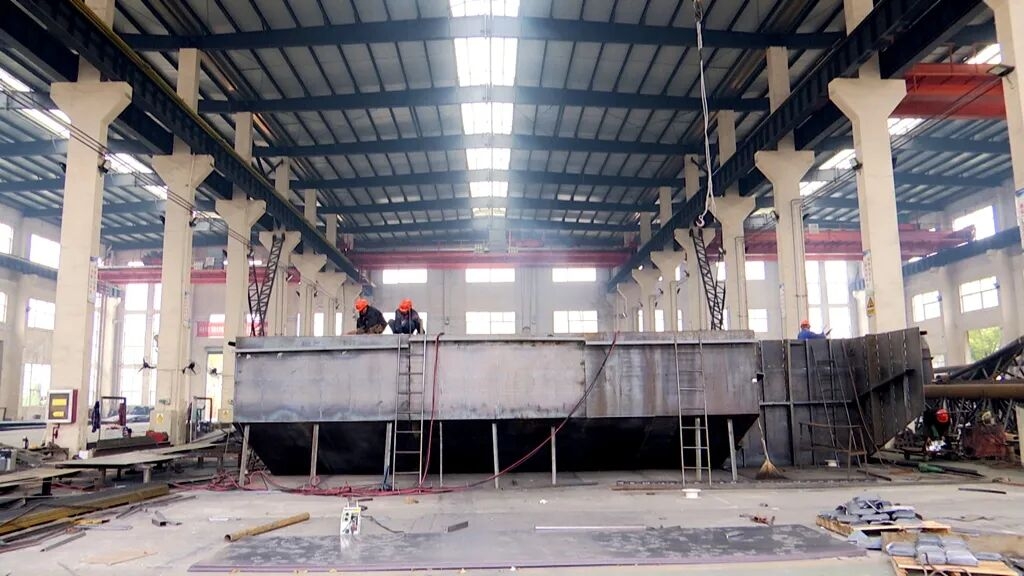 在公司的生产车间内,一套即将发往蒙古国的取水浮船泵站进入收尾阶段,不同于普通取水设备,这套浮船泵站破解蒙古国冬季极端低温难题,可在严寒环境下稳定运行。“我们采用多项专利技术,在零下50度的工况下保证能够正常取水,总摇臂长度达到500多米。”江苏河海给排水成套设备有限公司总工程师秦赛平介绍。