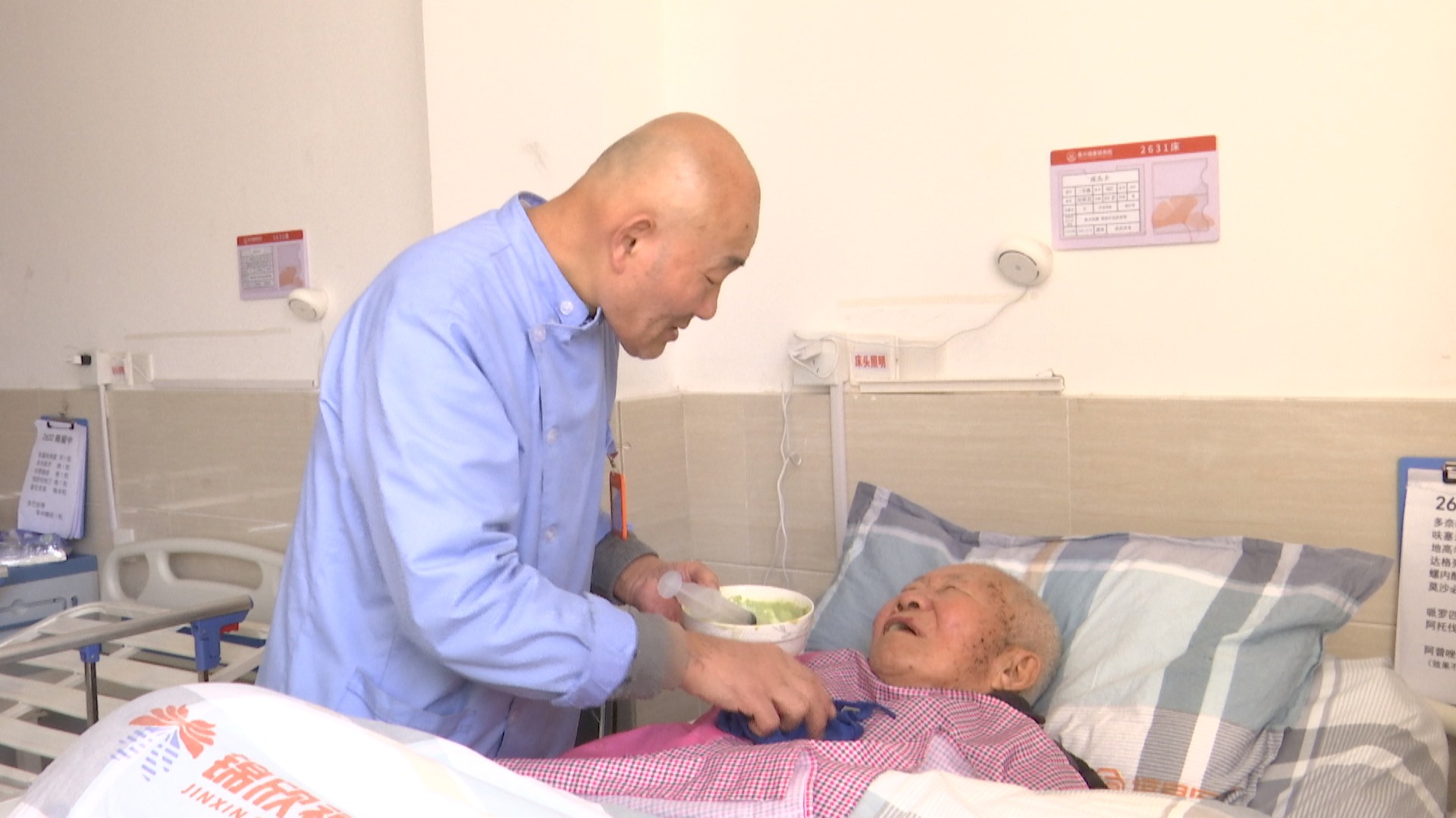 福康颐养院,护理员们正为老人擦脸、喂饭,用专业与温情守护老人们的日常起居。袁秀英老人今年91岁,因重度失能,长期需要专业护理人员照料,每月需支出大笔养老护理费用。家属王世兰说:“以前照顾老人压力挺大的。养老消费券每月抵几百块,经济压力小了很多。养老院也全程帮我们办理,特别省心,真心感谢政府的好政策。”