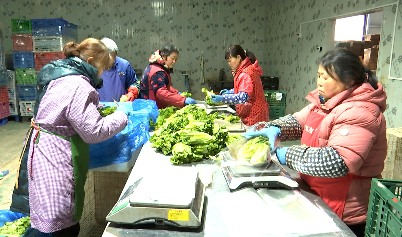作为当地农业龙头企业,织梦果蔬合作社依托稳定的本地供货基地,在全国布局多个蔬菜集散点,构建起稳定的供应网络。合作社仓库内,韭菜、芹菜、花菜、青菜等各类时令蔬菜堆积如山,工人们有条不紊地开展分拣、打包、装车工作。通过科学规划种植计划,合作社实现蔬菜“一茬接一茬”连续供应,保障市场需求不断档。