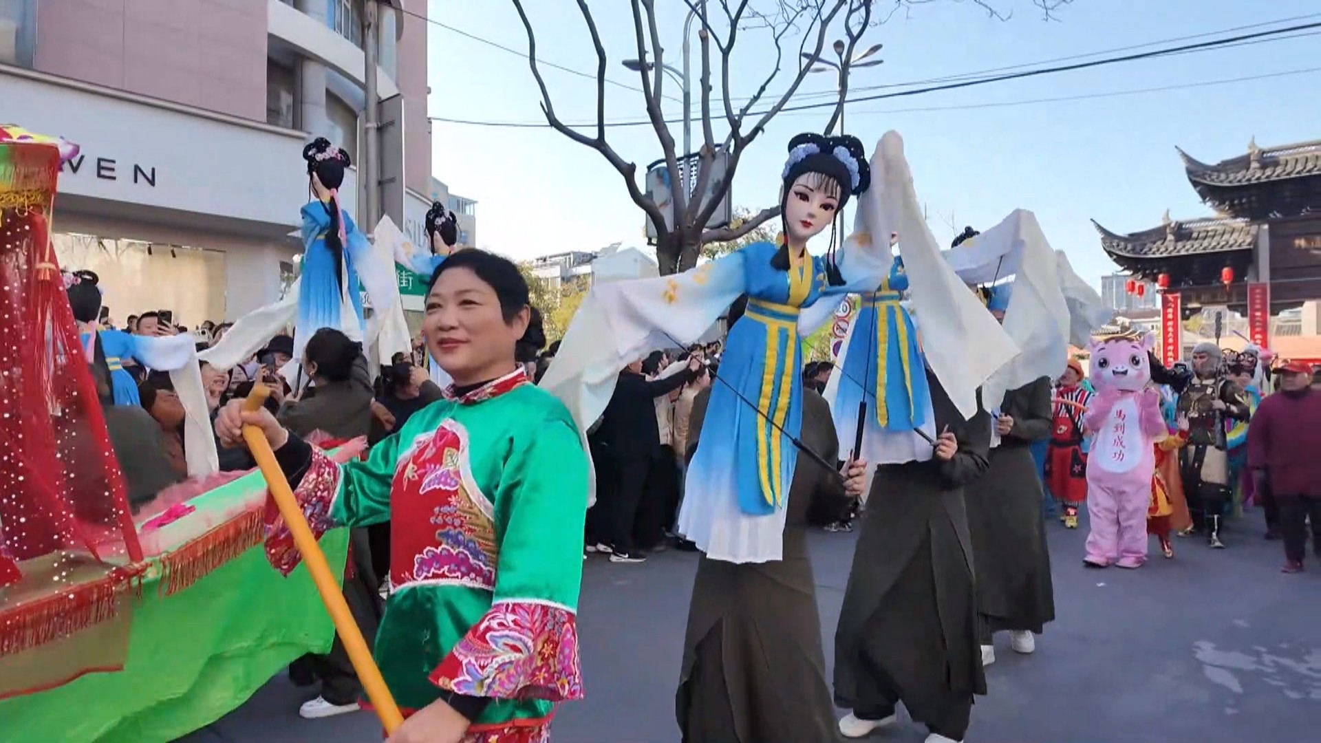 活动期间,市文化博览中心设立常态化非遗表演舞台,持续开展非遗项目展演;府前路巡游队伍盛装行进,其中英歌舞表演刚劲豪迈、锣鼓铿锵,泰兴花鼓、杖头木偶表演灵动俏皮、韵律十足,现场氛围喜庆热闹,处处洋溢着新春的欢乐气息。