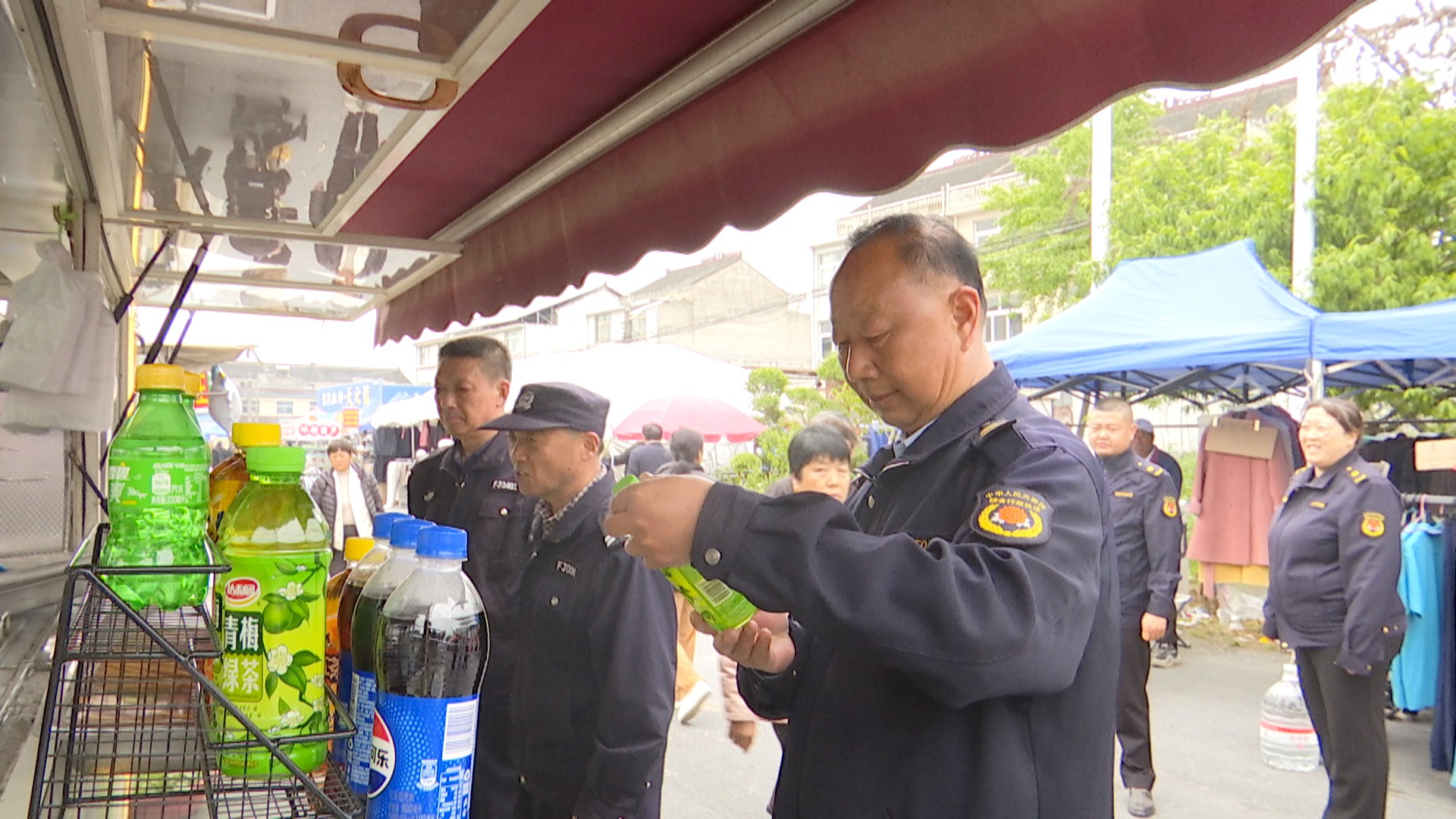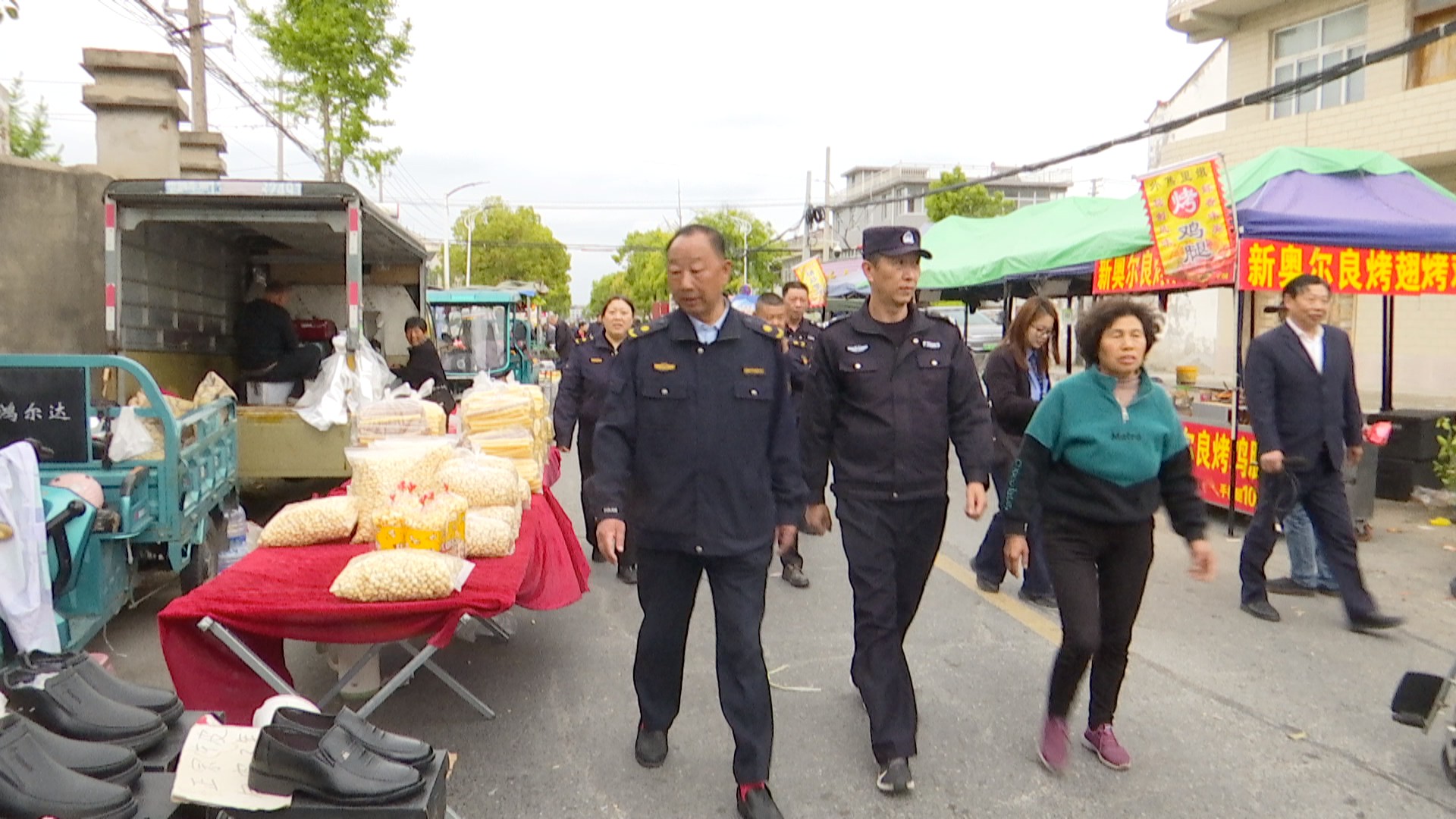 集场期间,综合执法队员徒步巡逻,检查摊位摆放,引导商户规范经营,清理占道经营等问题;公安民警每日清晨8点到岗,常态化巡逻,关注特殊群体,疏导人流、维护秩序,防范安全隐患。