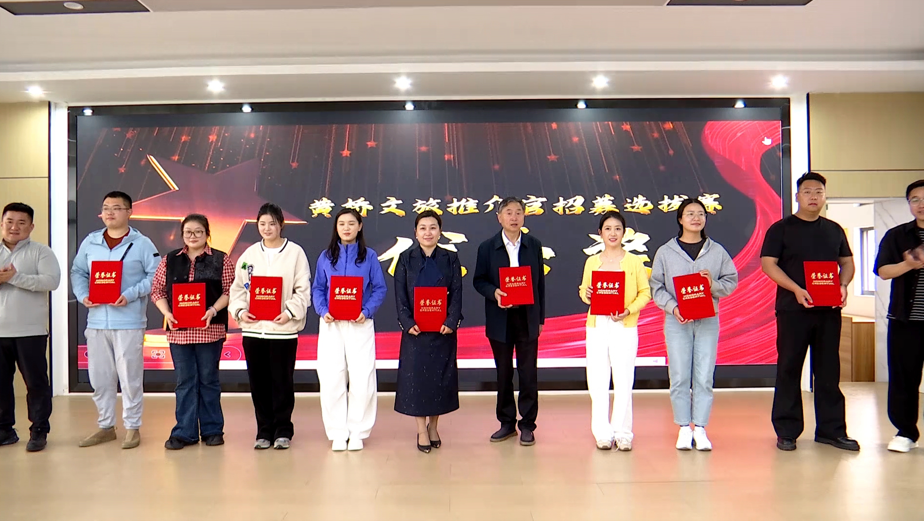 据悉,本次活动共评选出一、二、三等奖及优秀奖19名。9名受聘文旅推介官将于5月1日“五一古镇奇妙游”活动现场领取聘任证书,正式履职,助力黄桥文旅宣传推广。