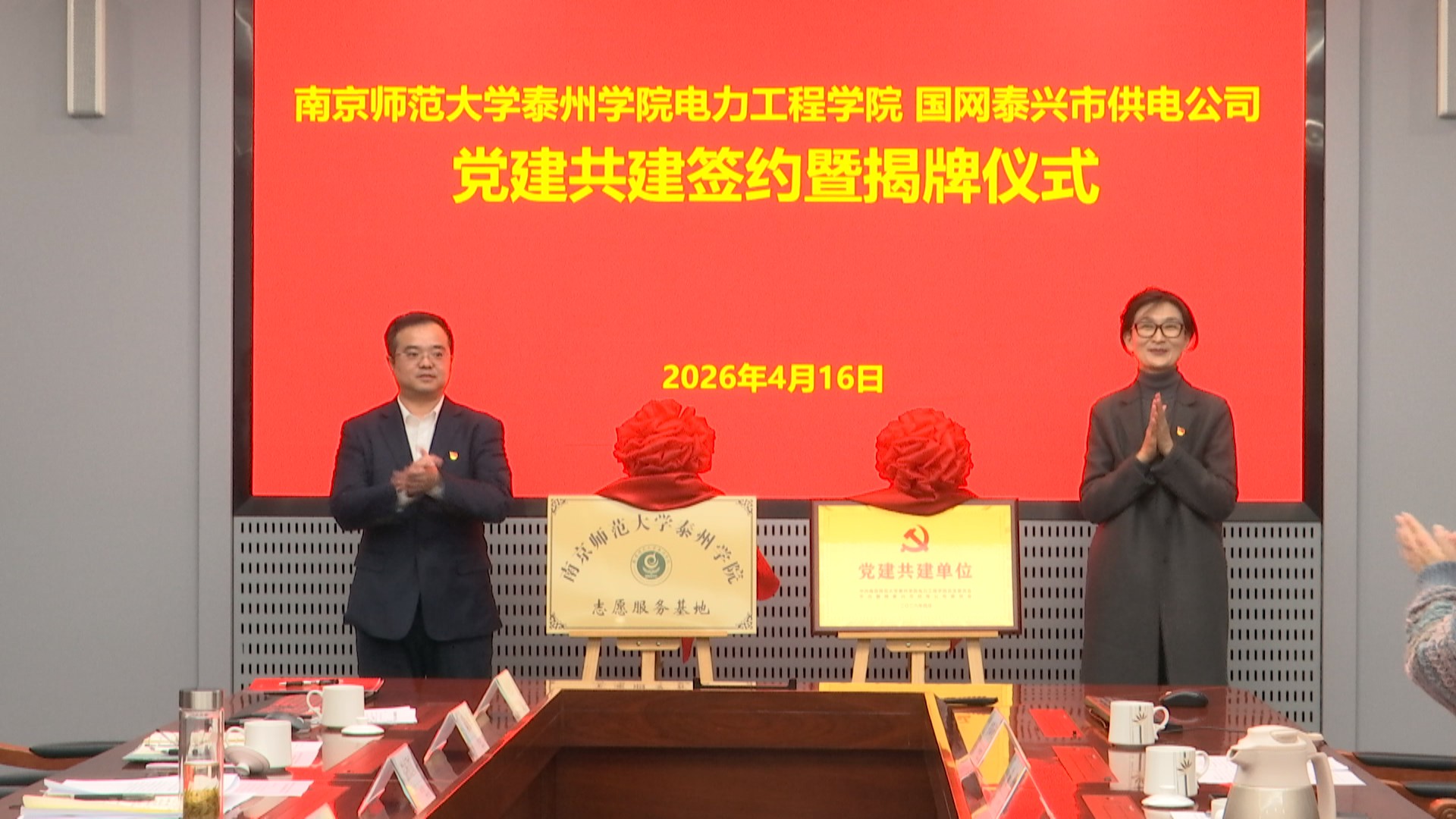 日前,南京师范大学泰州学院电力工程学院与国网泰兴市供电公司举行党建共建签约暨揭牌仪式,以“党建引领聚能・电力先锋赋能”为主线,深化校企合作,助力人才培育与地方发展。