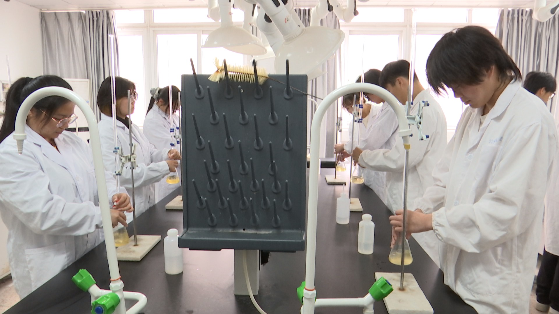 “特别是在做精馏实验时,产量和浓度结果一直不理想,分析实验数据不太稳定,准确度不够。面对这些问题,我们及时调整心态,细心操作,反复调试,最终顺利完成了比赛项目,获得了满意的成绩。”徐莹说。