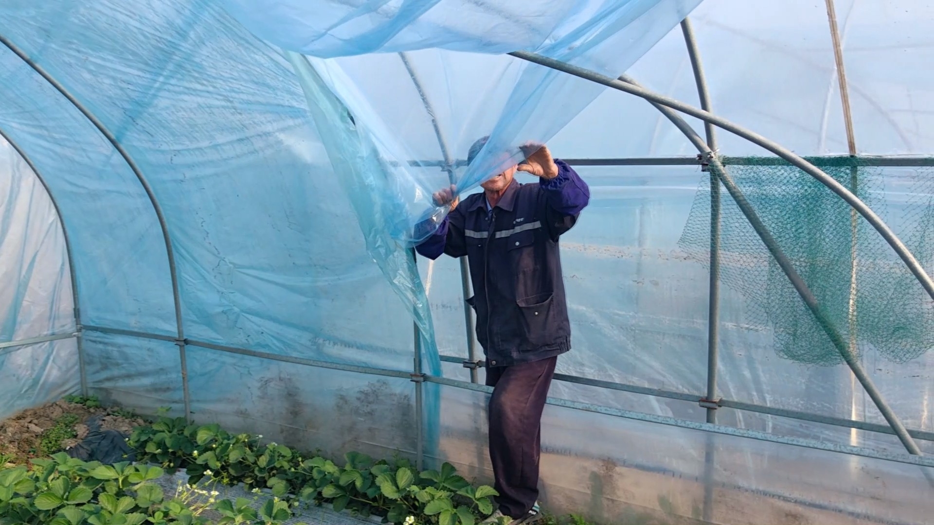 1月2日上午,济川街道南殷村田田草莓园里,大棚内暖意融融,工人们正抓紧加盖二道棚,为棚内作物筑牢保暖屏障。“我们准备了新型的绿色无污染的燃料,可以保证棚里的温度;还利用井水,通过水循环的方式,晚上不停地供水,确保大棚能抵抗零下10度左右,实现稳产。”田田草莓园负责人殷昶威说。