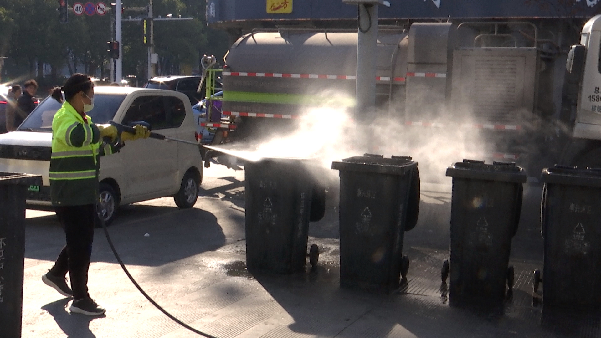 目前,市区主干道两侧共设置垃圾桶460余个。为确保每个垃圾桶干净整洁、无异味,假日期间,环卫工人持续坚守清洁一线。该公司车队网格压缩班操作员蔡萍表示:“我们每天都会清洗垃圾桶,单日清洗量约120个,全市范围内的垃圾桶四天可完成一轮全面清洗。”