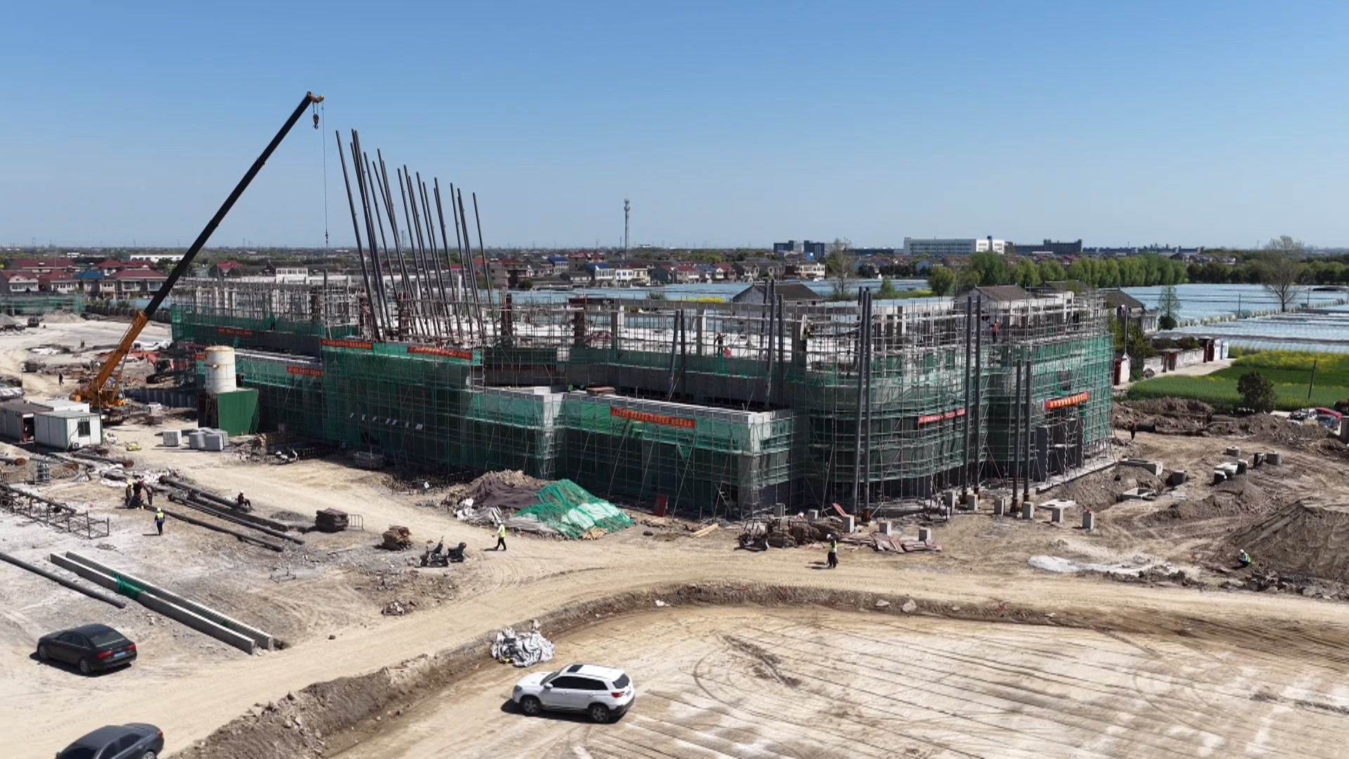 京沪高速广陵服务区改扩建项目现场,综合楼、生活楼等主要建筑已完成主体结构封顶,施工人员正有条不紊地开展外墙钢结构安装、内部墙体砌筑以及水电、消防管道安装等作业。广陵服务区原占地面积136.8亩,此次改扩建新增交通建设用地56.9亩,将对东区进行整体拆除重建,对西区原有综合楼进行改造,并同步完善相关配套设施,进一步提升服务区服务能力。项目监理单位负责人王德才介绍:“下一步主要是做好室内安装、装修工程,同步推进广陵服务区广场的施工工作,目标是2026年5月30日前交付使用。”