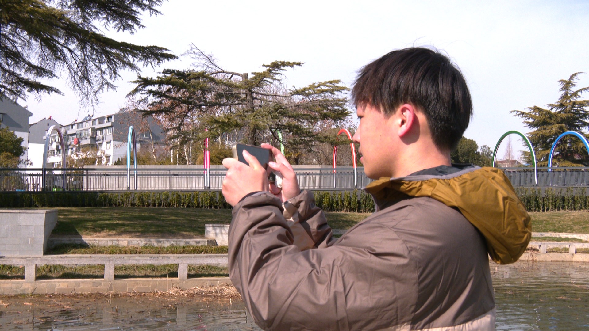 2月20日上午,返乡大学生姚酉航来到羌溪河风光带休闲游玩,一边漫步一边用手机记录下冬日里的家乡美景。“有篮球场、羽毛球场、乒乓球场、网球场,比较适合我们这些喜欢运动的人过来健身休闲。”姚酉航说。