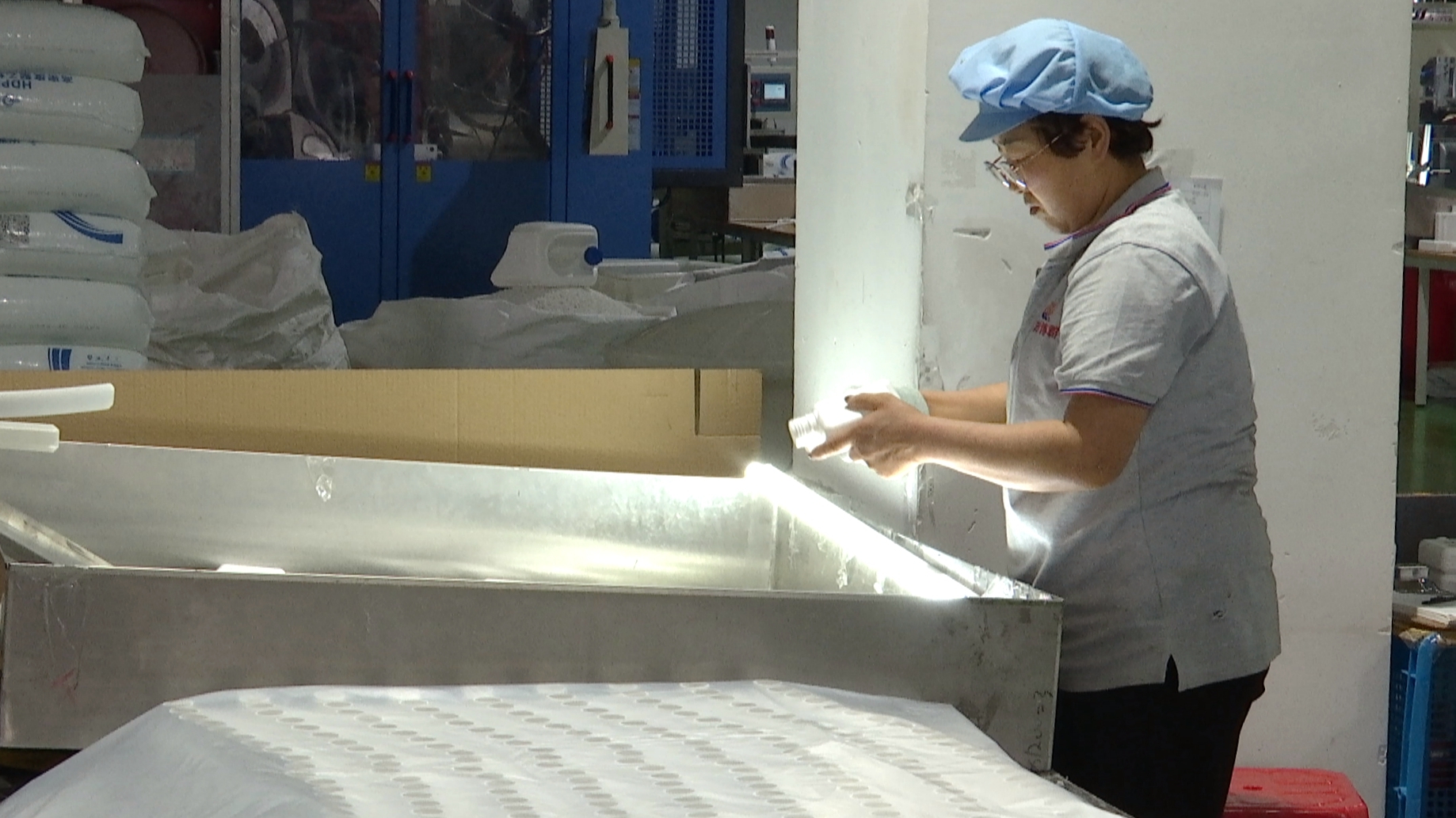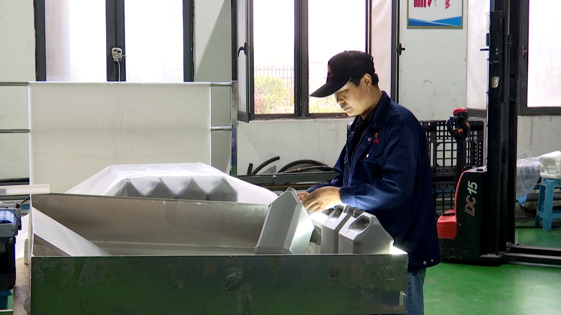 4月15日下午,该公司内一派忙碌景象,一批发往苏州客户的塑料包装容器正有序装车发货。车间内,14台吹塑机高效运转,工人们全力赶制在手订单,生产秩序井然。