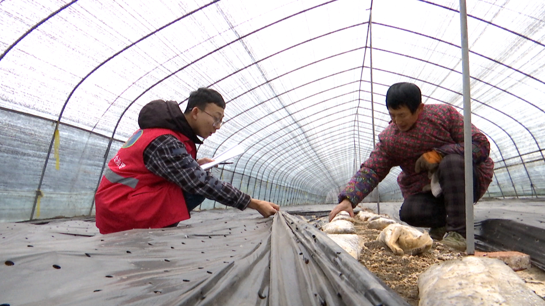 另一边,姚王街道新星村羊肚菌种植基地内,御寒防护工作也在紧锣密鼓推进。当前正值羊肚菌菌丝生长关键期,对温湿度要求极高。新星村村委会工作人员深入种植大棚,逐一排查棚体骨架稳固性、棚膜覆盖严密性及温控设备运行状况,与种植户面对面交流,精准发布防冻防雪预警提示。