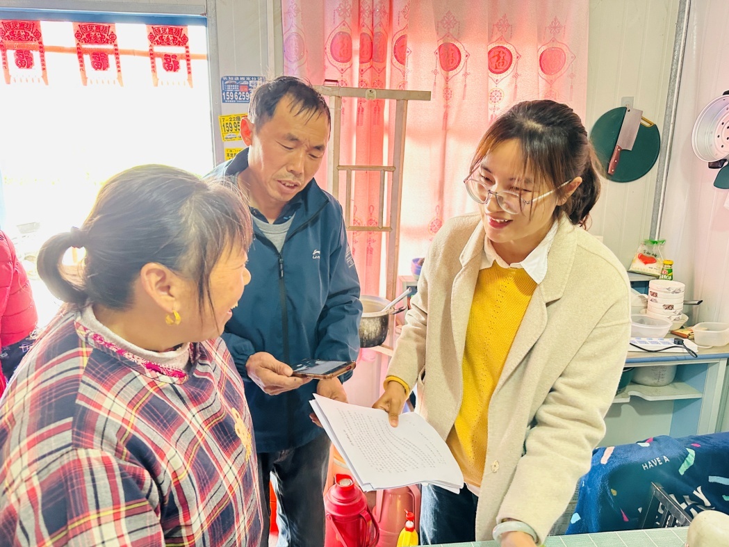 二是用心用情,化解群众疑惑。为确保各村征迁工作顺利进行,镇、村、组三级将拆迁相关文件张贴公示,此外,征迁工作人员充分利用时间对每一户被征收人走访入户,告知相关的补偿政策、安置方案,倾听群众诉求,了解实际情况,积极查找工作薄弱点和突破口。针对征迁户提出的房屋结构形式、成新率、补偿标准等相关问题,征迁工作人员第一时间上门答疑解惑,取得征迁户的信任与支持。
