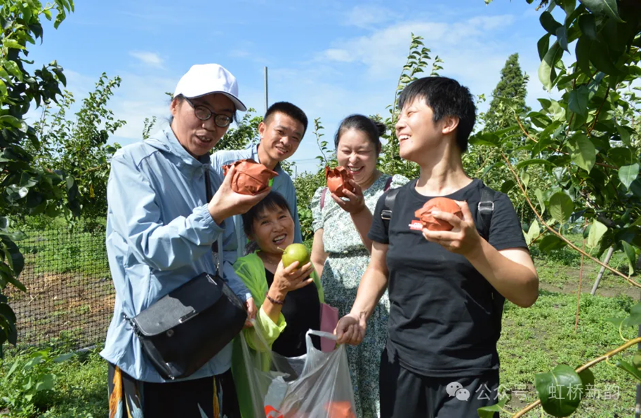 新街镇乐呦家庭农场是两镇携手、温情助残的第一站。虽有台风侵扰,但在硕果累累的梨园里,高温酷暑的余威犹在。在农场技术人员的指导和志愿者陪护下,两镇残疾人兄弟姐妹兴高采烈地寻觅、挑选、采摘,满心欢喜地品尝着自己亲手采来的果实。虹桥镇蒋华村党总支副书记张文学高兴地说,今天参加活动的大都是他们村的精神障碍患者,平时对于外面的世界几乎一无所知。这次活动让他们接触到了丰富多彩的大自然、感受到了劳动的快乐,更为重要的是,也让残疾人群体感受到了收获的喜悦和生活的美好。
