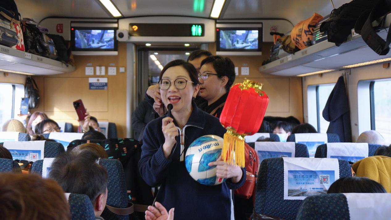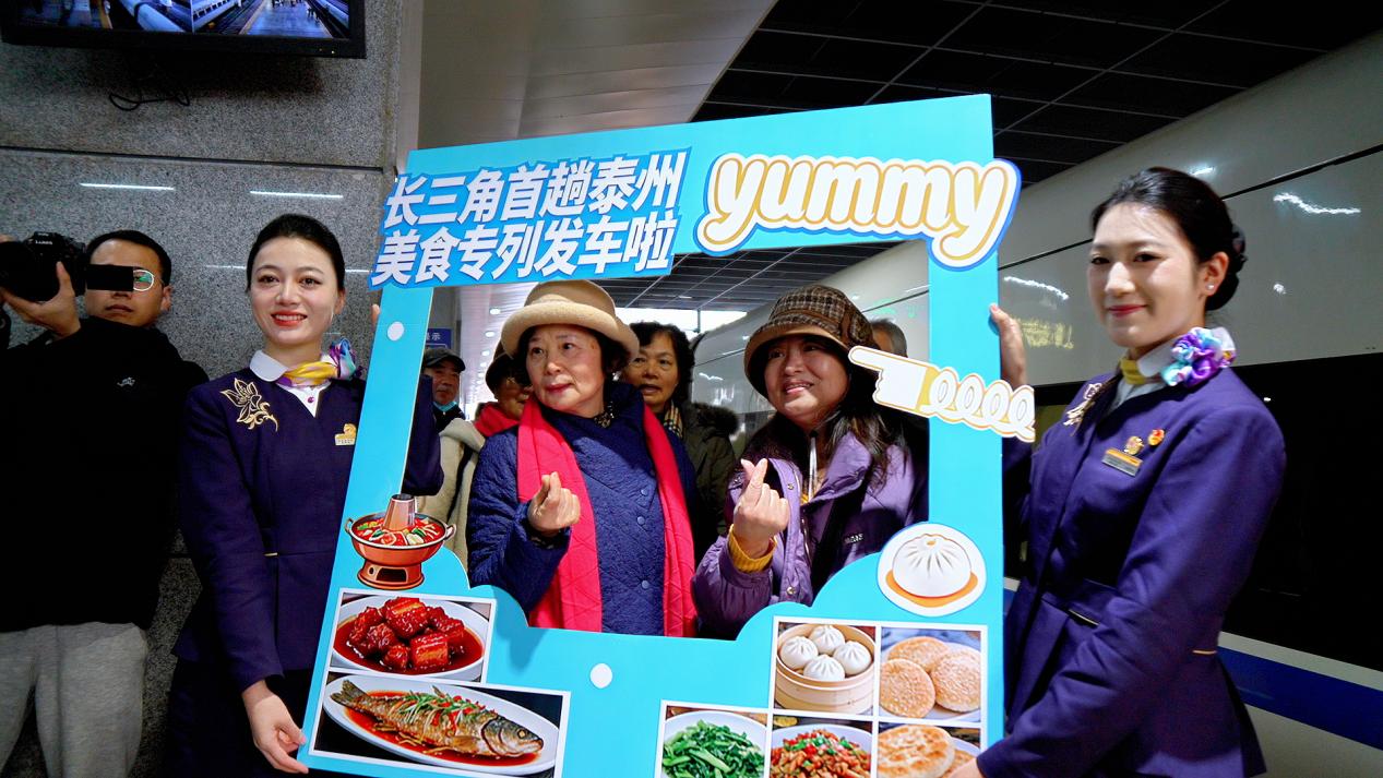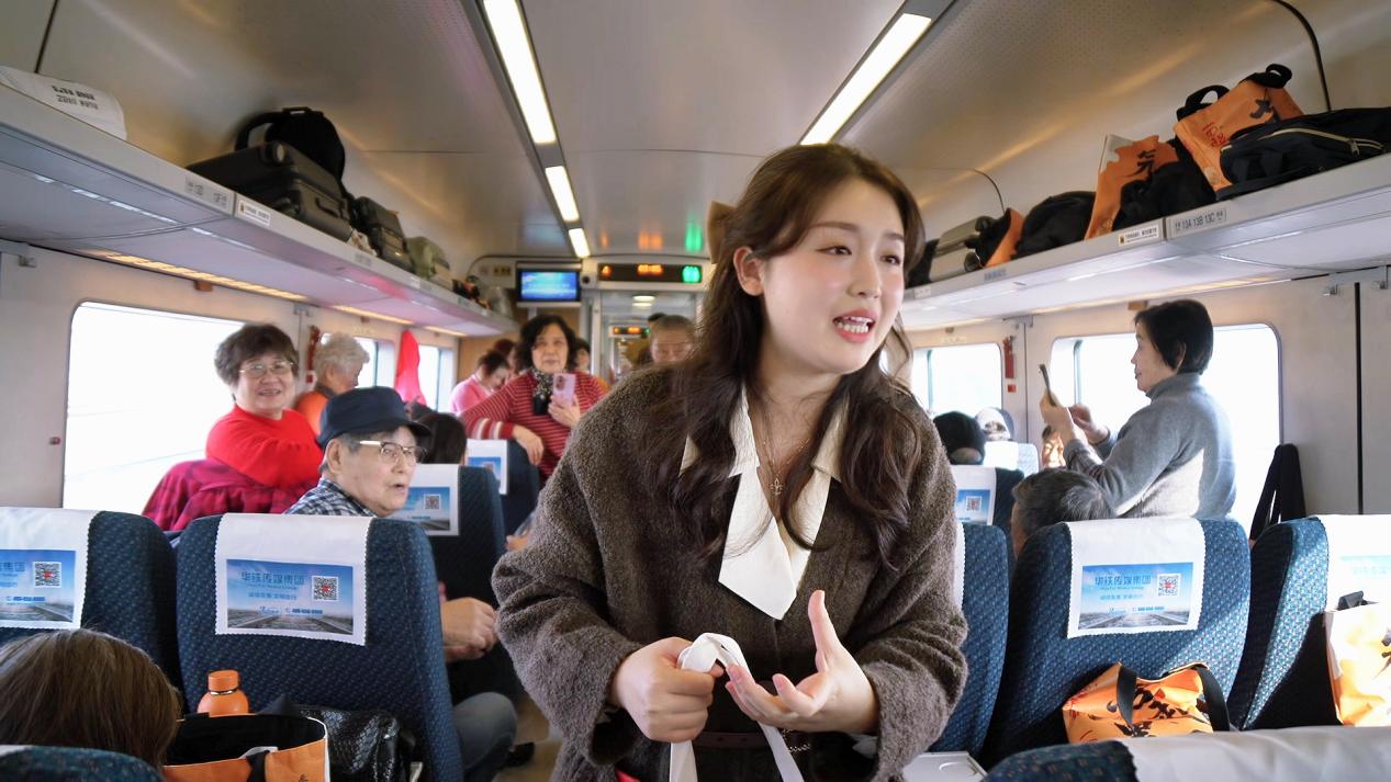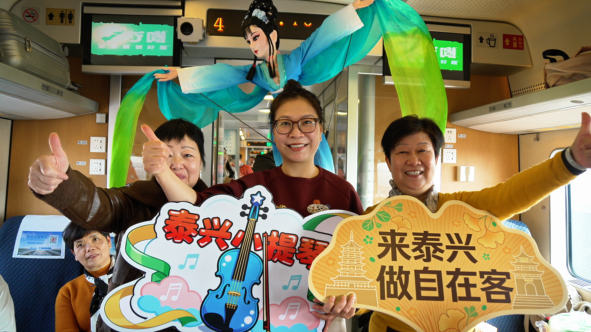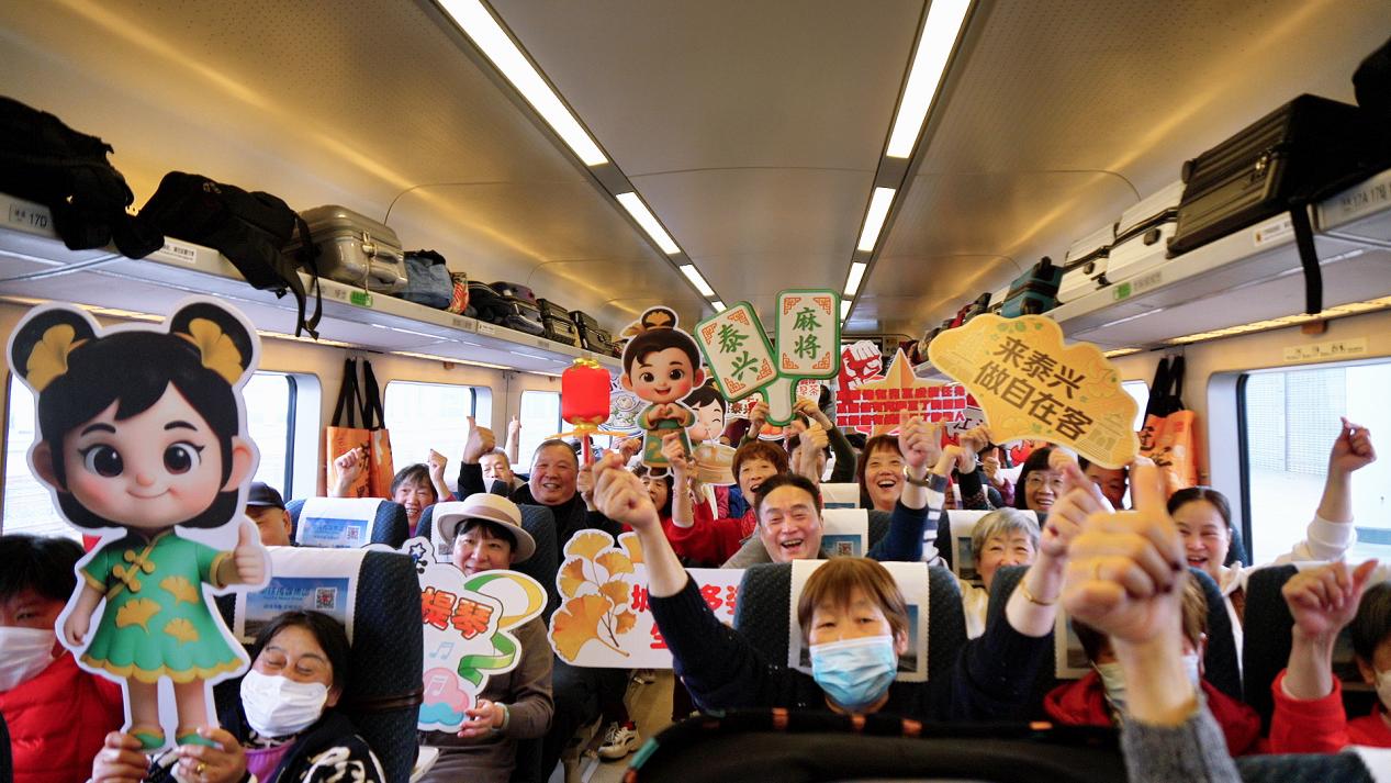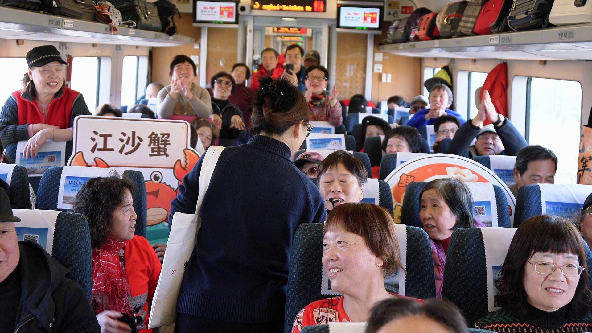 清晨7:50,列车缓缓启动。车厢内,一场“流动的泰兴推介会”早已布置完成。伴随着主持人的热情问候,这场车厢盛宴正式开启。