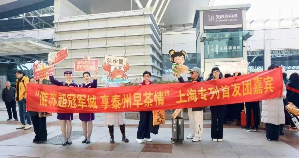 12月5日,“游苏超冠军城 享泰州早茶情”沿着沪宁去旅行・上海专列泰州三日游首发团如约而至,600余名上海游客走进泰州泰兴,沉浸式感受这座“苏超冠军城”的红色基因、非遗韵味与舌尖美味。
