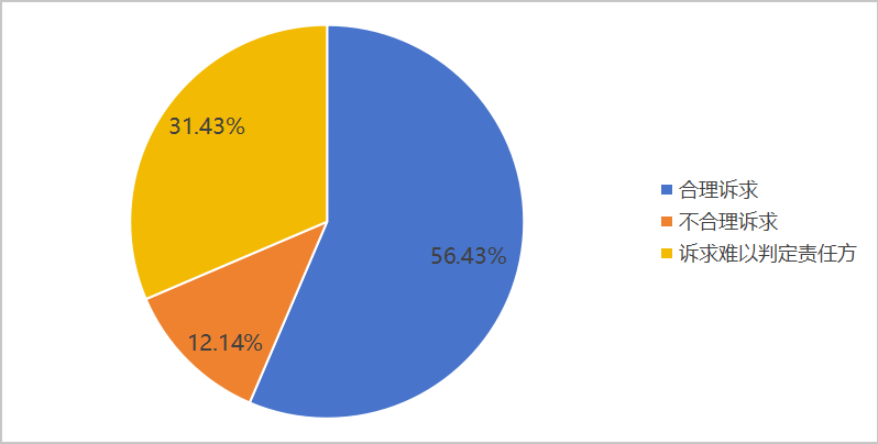 在退费退卡难这一问题中,其中依法要求退费等消费者的合理诉求237件(占56.43%),超过使用期限仍要求全额退款等消费者的不合理诉求51件(占12.14%),诉求难以判定责任方的132件(占31.43%)。
