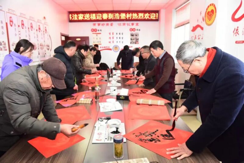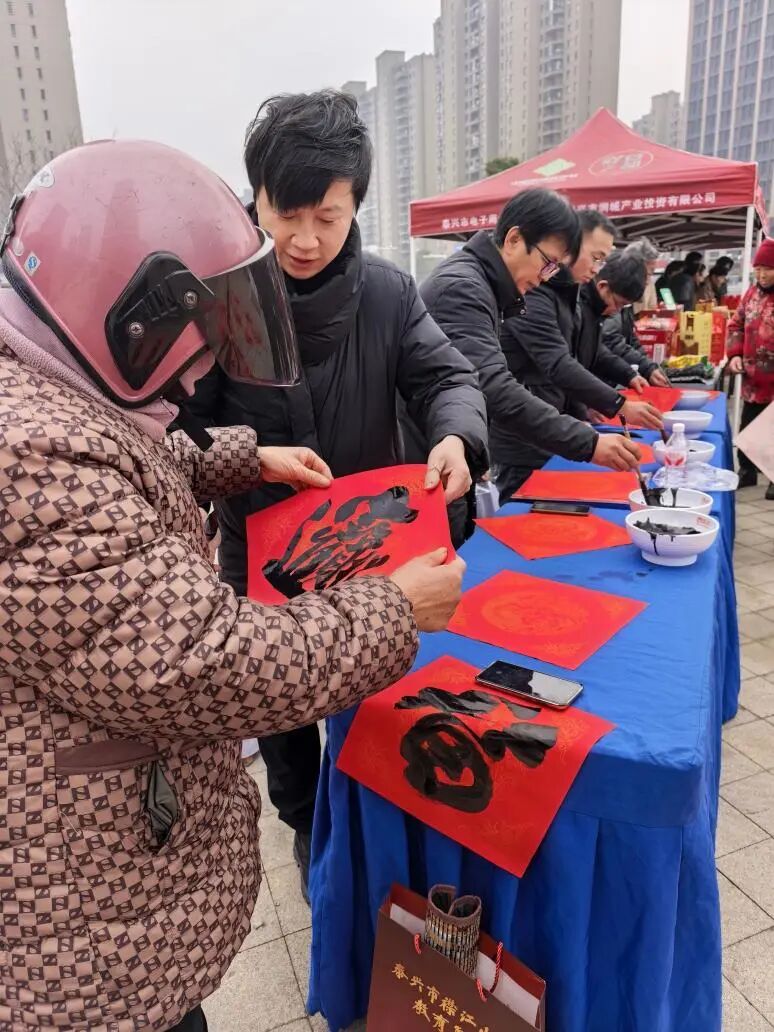 1月29日,在黄桥镇浩堡村活动现场,泰兴、黄桥两地书法家们将浓浓的祝福融入到一副副寓意吉祥的春联和“福”字之中。“马到成功财运广,龙腾盛世福泽长”等一幅幅充满喜庆和美好愿景的春联跃然纸上,散发着清新的墨香。村民们拿着自己喜欢的春联和福字,脸上洋溢着幸福的笑容。